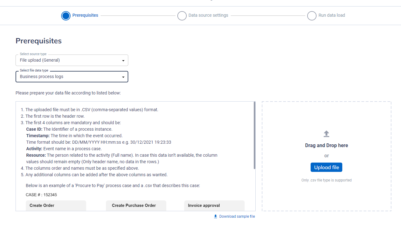 Rather than connecting directly to a source system, you have the option of upload a flat file in CSV format.